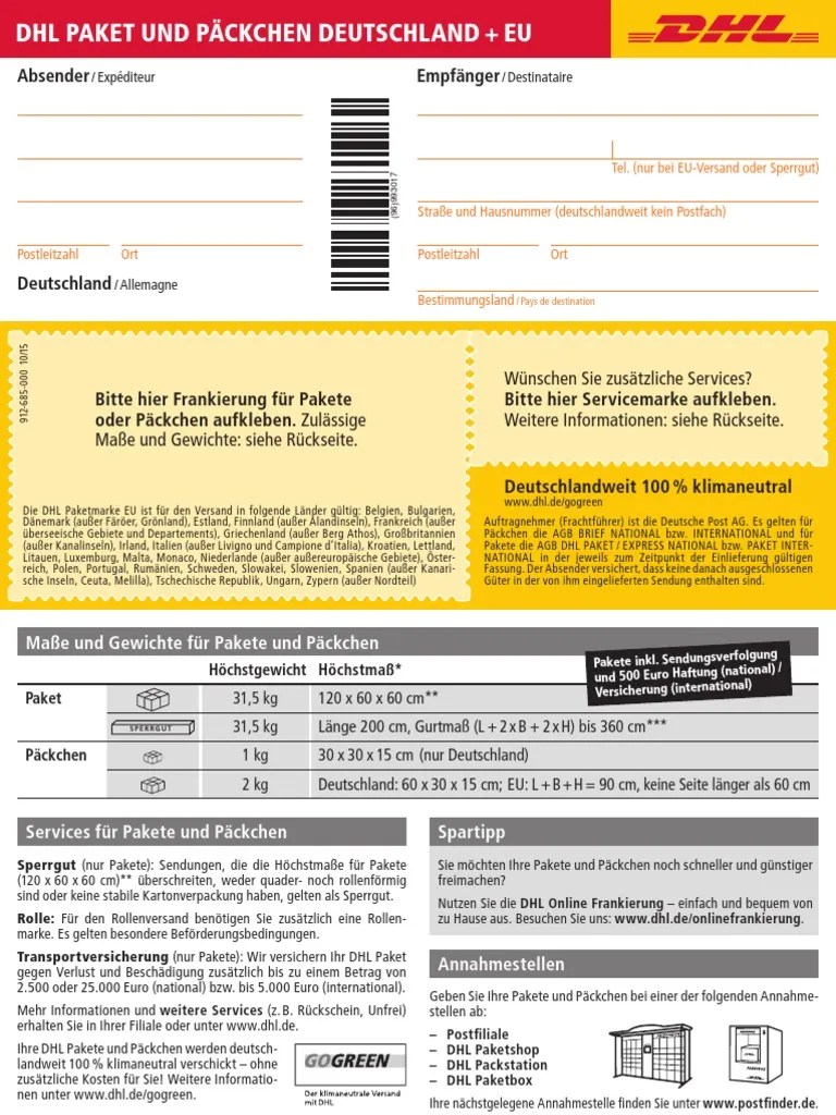 Online Frankierung Druck Dhl Privatkundenservice from www.dhl.de Dhl paketaufkleber pdf ausfüllbar / dhl paketaufkleber zum ausdrucken pdf akkus und batterien welche gefahrgut vorschriften gelten beim versand awesome stuff3 wall. Foto dhl paketaufkleber ausdrucken pdf design 2019 paketschein dhl versandanbindung versandsoftware schnittstellenanbindung damit die. Bei der normalen dhl onlinefrankierung muss man ja im prinzip alles ausfüllen und dann erst online bezahlen um überhaupt zum drucken zu kommen. Dhl paketaufkleber pdf ausfüllbar / dhl paketaufkleber international pdf : So weit, so gut, alles schön einfach. Dhl paketaufkleber international pdf : Dhl paketaufkleber pdf ausfüllbar / dhl paketaufkleber international pdf : > bezahlung bei ebay für dhl paketaufkleber.